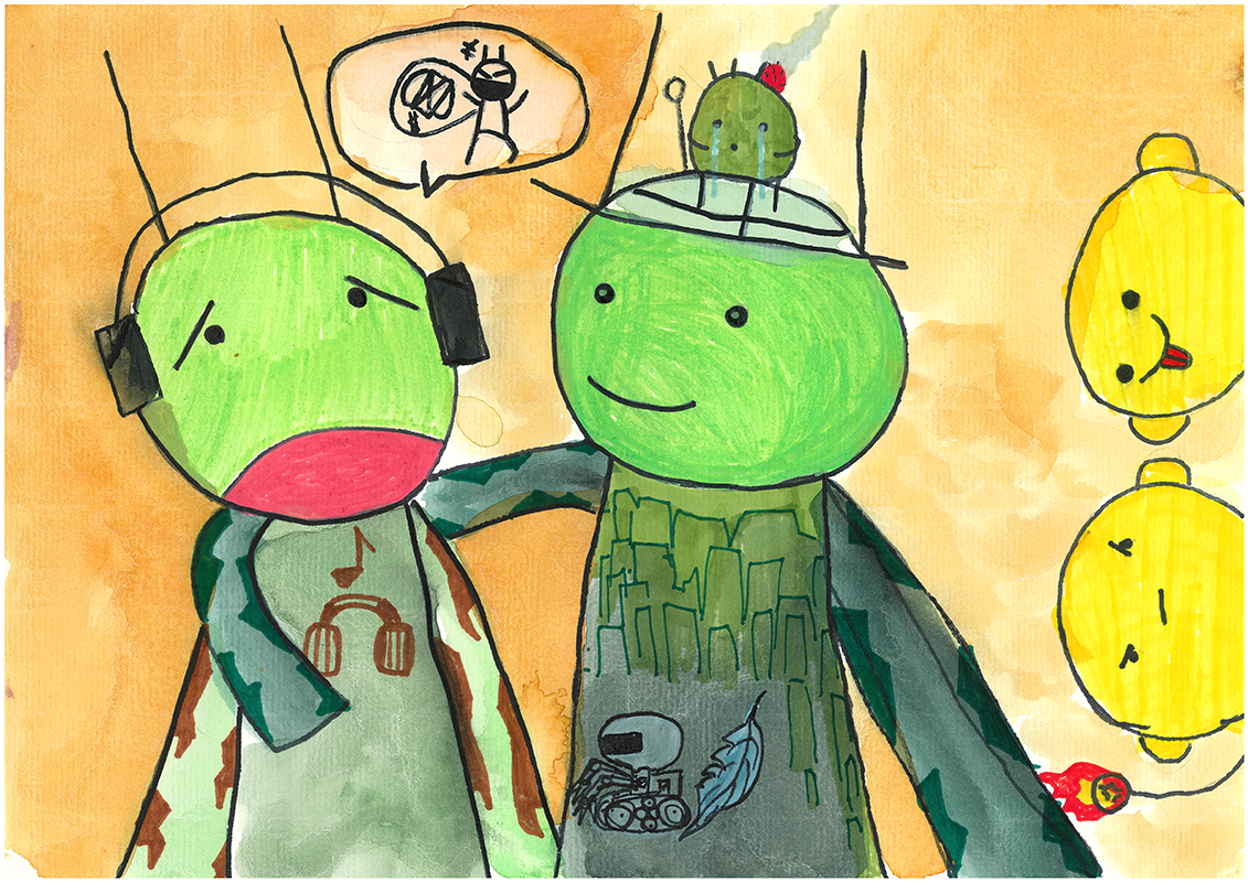 我們從三年級就一直是朋友,也是上次比賽作品故事的創作來源,此次的主題,使我回想四年級有一段時間我和他之間有一些衝突,導致那時候我一直都不敢尋求他的原諒,後來我發現有一個朋友是一件多幸福的事,於是我鼓起勇氣跟他認錯,說完就覺得心情很暢快,心理的矛盾也消失了。因為有這些衝突才能讓我們更了解彼此。