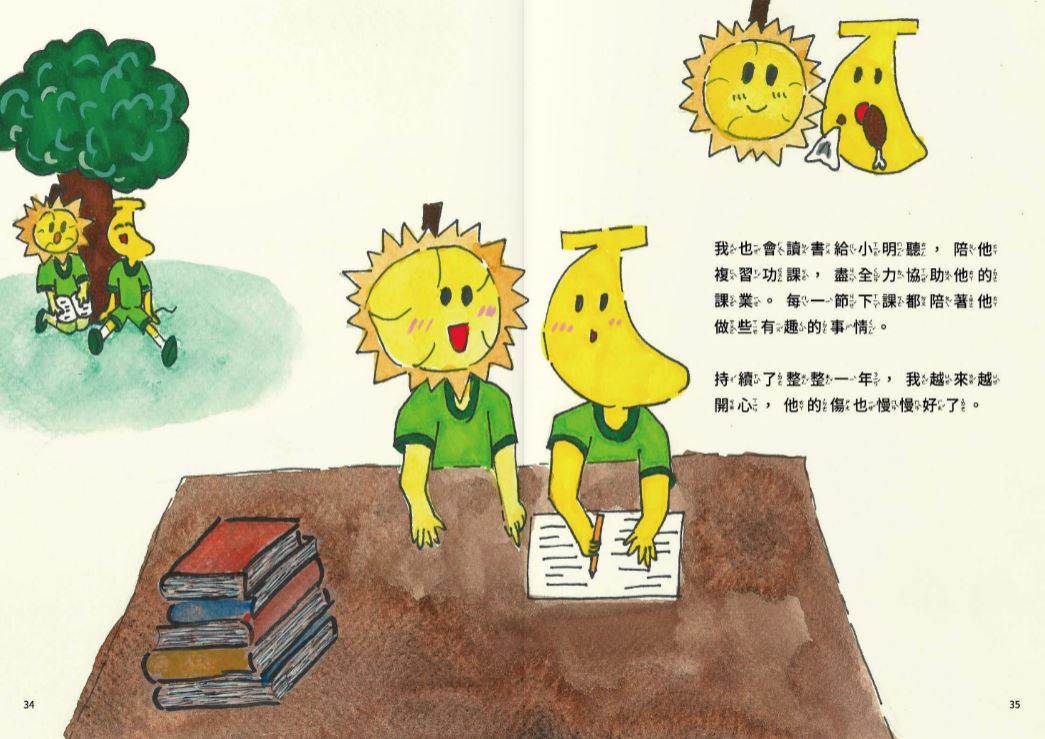 很榮幸我可以得到這次比賽的銀獎,我從幼稚園開始就很喜歡畫畫,但我小學二年級才去上畫畫課,原本暑假作業的畫圖都亂畫,直到我遇見了政忠老師,我開始認真對待作品,幾乎每一次都會被選去比賽,五年級遇見了雪青老師,他想讓我參加繪本比賽,有媽媽的支持,和老師的鼓勵讓我創作出了人生中的第一本繪本,雖然只有佳作,但我又在暑假重振自信,開始第二本的創作,我們兩個禮拜約去學校一次,努力把繪本作好,當然也少不了媽媽的督促與支持,要不是媽媽的督促我可能都趕不上這場比賽,也感謝雪青老師的指導才有這本繪本,也謝謝媽媽幫我思考要怎麼呈現作品,也很感謝同學願意幫我出演,也感謝主辦方讓我有這個機會出版我的書並上台演我的故事,這可能是我一生中唯一一次機會有這種體驗。